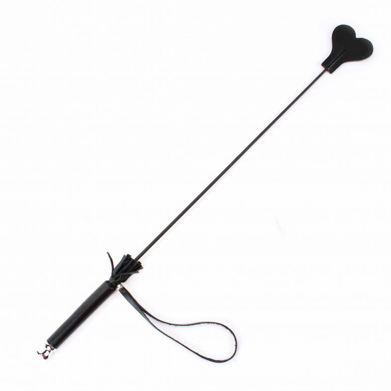 Рукоятка стека из натуральной кожи черного цвета, на конце девайса расположен кожаный шлепок в виде сердечка. На рукоятке расположена петелька. Легкий, гибкий, практичный стек доставит максимальное удовольствие партнерам от БДСМ игры. Размеры шлепка - 6 х 8 см.