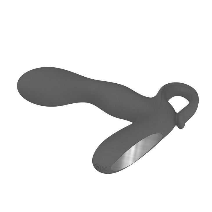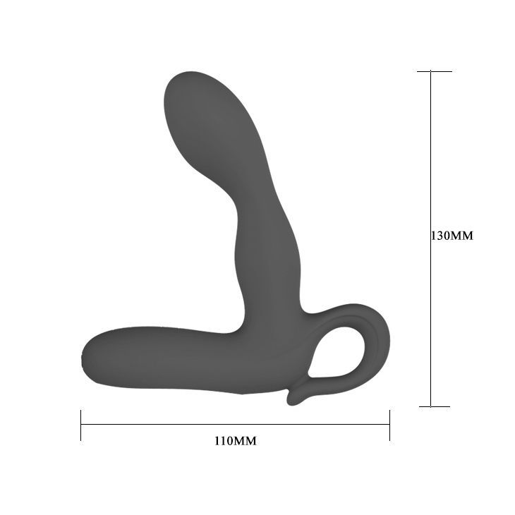 Чёрный вибростимулятор простаты Barrack с основанием для стимуляции мошонки и колечком-ручкой. 30 функций вибрации. Заряжается от USB. Рабочая длина - 10 см.