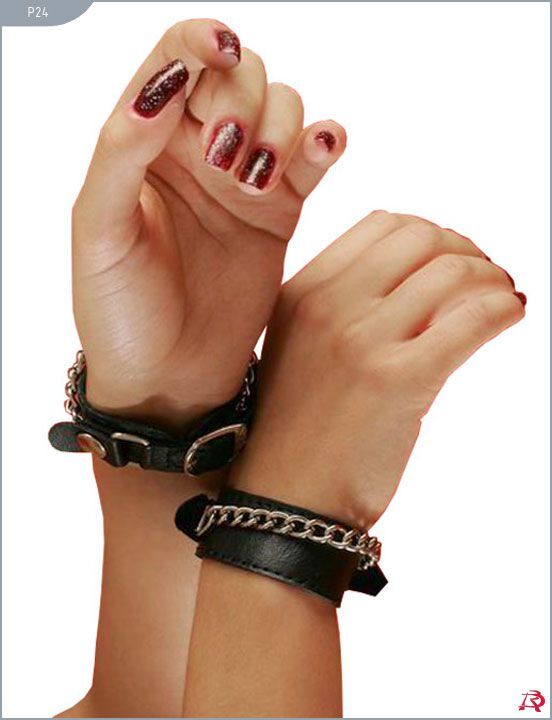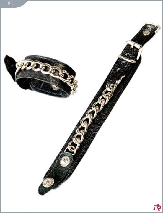 Декоративные наручники на кожаной подкладке Узкие кожаные наручники, украшенные цепями. Можно использовать как браслеты или напульсники. Материал: мягкая кожа превосходной выделки. Размер универсальный.