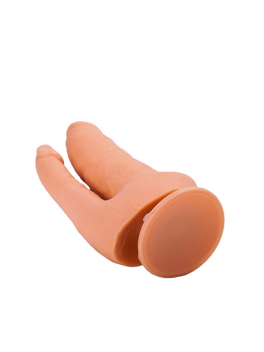 Этот бежевый стимулятор из бархатистого на ощупь материала – ваш ключик к двойному наслаждению. Секс-игрушка с подошвой-присоской представляет собой слившиеся у основания фаллосы – крупный и тонкий. Когда первый, с пышными венками и игриво вздёрнутой головкой, погружается в лоно, второй заполняет собой анус. Одновременная стимуляция стеночек, синхронное скольжение стволов…ох, возбуждение достигает пика за считанные минуты! Рабочая длина вагинального отростка - 13 см., диаметр - 3,6 см. Диаметр анального отростка – 2,1 см.