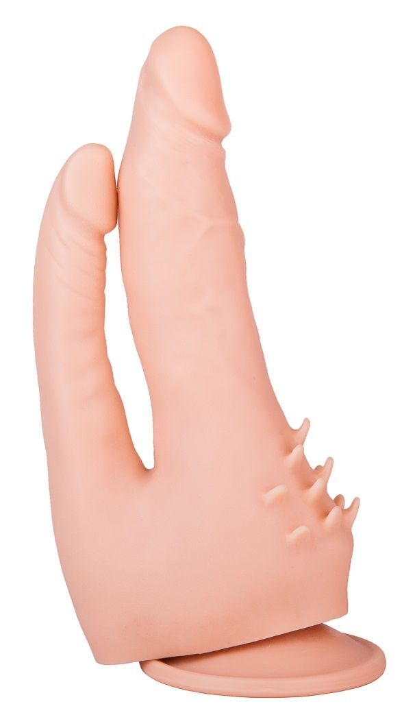 Может ли интимная игрушка одновременно стимулировать внутри и снаружи? Эта модель с подошвой-присоской способна на большее! Стимулятор представляет собой слившиеся воедино фаллосы разного размера. Большой, с рисунком напряжённых вен, предназначен для вагинальных ласк. Тоненький идеально подходит для чувственных анальных проникновений. Пока фаллосы массируют стеночки лона и ануса, мяконькие шипы снаружи обеспечивают воздействие на клитор. Лёгкий массаж этой зоны приумножит и без того мощное удовольствие от двойного проникновения. Рабочая длина - 17 см., диаметр головки - 2,9 см. Диаметр анального отростка – 2,1 см.