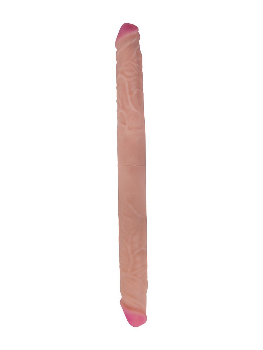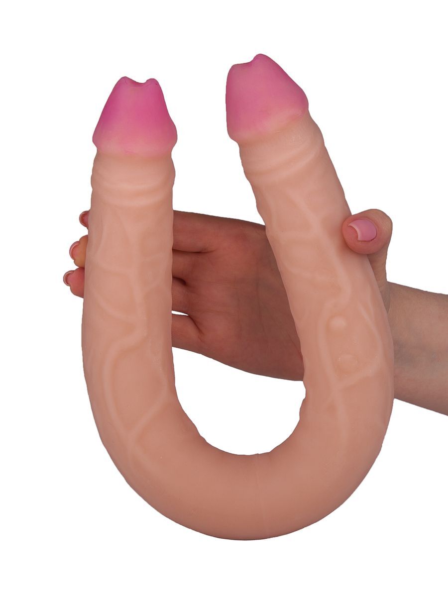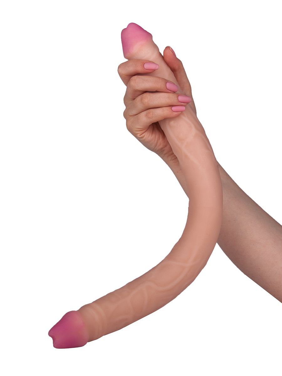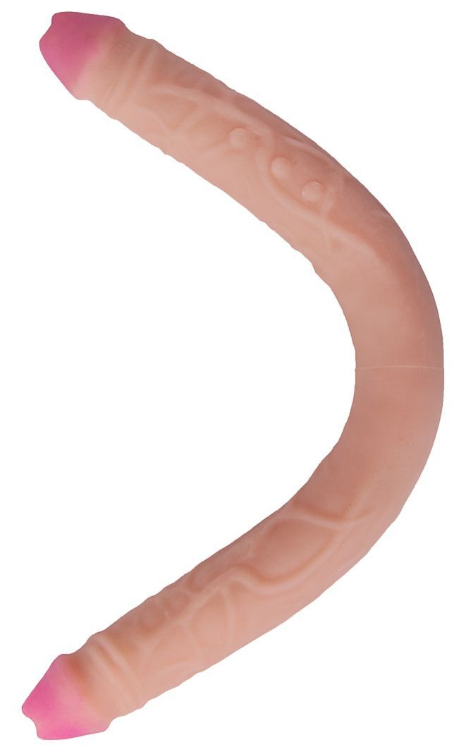 Сексуальный и дерзкий двойной фаллоимитатор, изготовленный из неоскина - материала, в точности копирующего кожу. Этот аксессуар для двоих имеет ярко выраженные сочные головки, рельефную поверхность в виде отлично прорисованных венок. Приятный на ощупь, гибкий и упругий, он подарит массу удовольствия партнершам. Руки при этом остаются свободными, вам остается лишь выбрать - тянуть или толкать. Диаметр головки - 3,6 см.