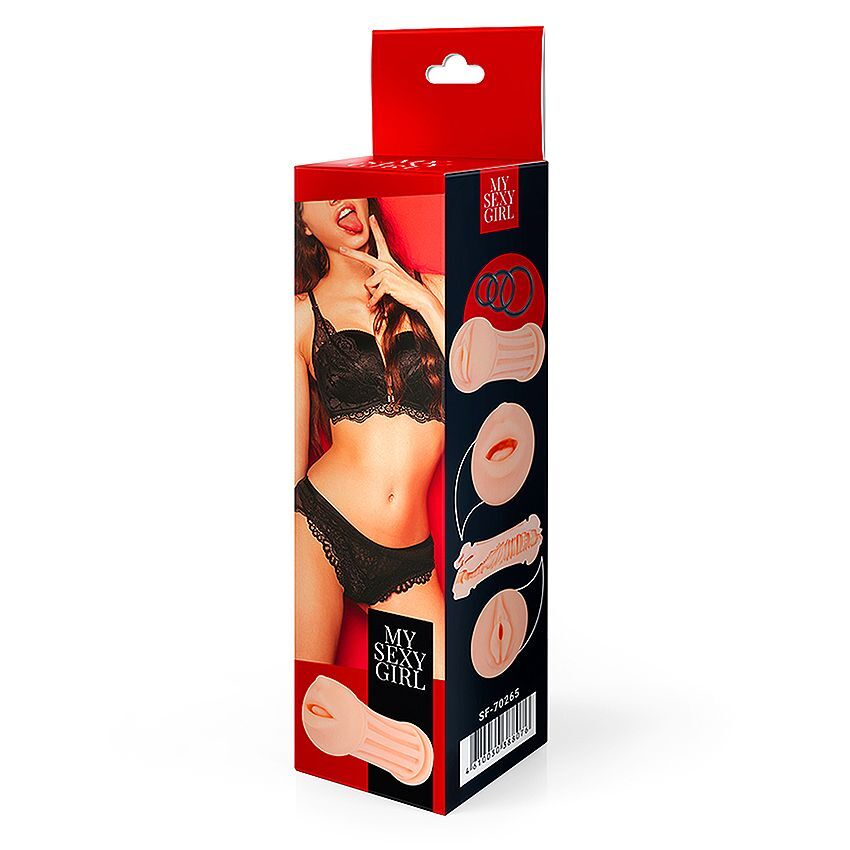 Набор секс-девайсов воплотит в жизнь ваши эротические фантазии. В комплект входит двусторонний мастурбатор и три эрекционных кольца.Одна сторона мастурабтора имитирует сочное манящее влагалище, другая - чувственный ротик с игривым язычком. Благодаря мягкому эластичному материалу интимный аксессуар отлично растягивается, принимая форму пениса. Внутренние поверхности изделия имеют рельефную поверхность, что способствует дополнительной стимуляции полового члена. Эрекционные кольца обеспечат сильную эрекцию и продлят интимную близость. Они хорошо тянутся, подходят для пенисов разных размеров. Внутренний диаметр колец - 5, 4 и 3 см.