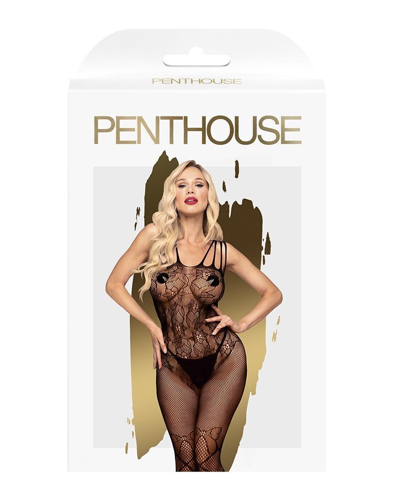 Боди-комбинезон в мелкую сетку с оригинальным рисунком, подчеркивающим достоинства фигуры и скрывающим ее недостатки.
