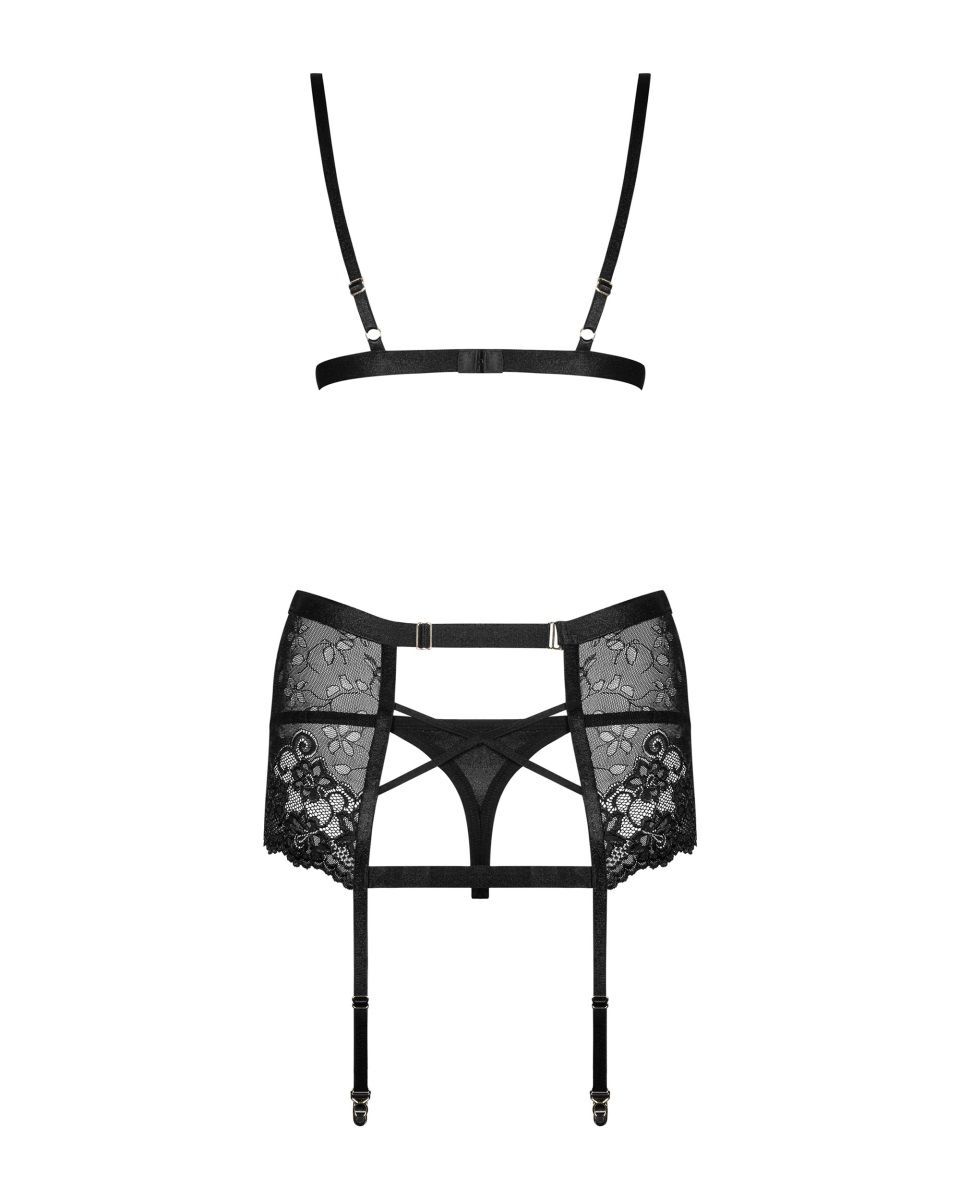 Невероятно сексуальный комплект белья из трёх предметов серии Blanita. Мягкий бюстгальтер из атласа на тонких, регулируемых по длине, бретельках, на спине застежка-удлинитель, чашки декорированы кружевом. Широкий пояс из атласа и кружева с пажами для чулок. На спине застежка и перекрещенные тонкие союзки обеспечивают идеальную посадку. Трусики-стринги. В комплекте: бюстгальтер, трусики, пояс для чулок.