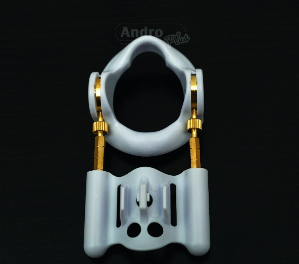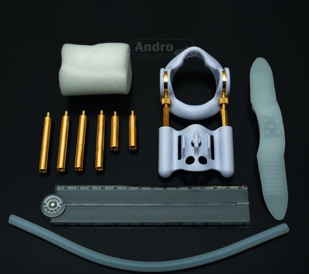 Вы недовольны размером своего пениса и ищете действенный, безоперационный метод его увеличения? Профессиональный аппарат экстендер Androplus поможет вам легко и безболезненно увеличить половой член в домашних условиях. Рекомендовано докторами! Экстендер – это прибор, способный увеличить размеры пениса без боли и дорогостоящих операций. При этом, аппарат дает не временный, а постоянный результат – достигнув определенных размеров члена, вы навсегда станете их обладателем. Действие аппарата основано на силе растяжения: под воздействием прибора пещеристые тела и связки растягиваются, что вызывает постепенный рост новых клеток, а значит – увеличение пещеристых тел в объеме. Результатом такого воздействия является то, что пещеристые тела могут вобрать в себя больше крови при наступлении эрекции. При этом, на качество эрекции и оргазма это никак не отражается. Вставьте член в кольцо экстендера так, чтобы оно оказалось у основания пениса. Отрегулируйте высоту штанг, при необходимости добавьте стержни для создания идеальной длины прибора. Поместите головку на пластмассовой опоре и зафиксируйте с помощью силиконового жгута. Надевать прибор следует на пенис в расслабленном состоянии и носить его не менее 4 часов в день ежедневно на протяжении 4-6 месяцев. Продолжительность ношения прибора можно увеличить в зависимости от результата, которого вы желаете достичь. Аппарат рекомендуется носить только днем. Ночью прибор необходимо снимать в связи с непроизвольной эрекцией и замедленной работой организма. Маленький размер аппарата позволяет носить его вне дома. Он совершенно незаметен под одеждой, поэтому вы легко можете надевать его, отправляясь на работу. Кому будет полезен прибор Androplus? Мужчинам, желающим безболезненно и без операции увеличить размеры полового члена страдающим искривлением пениса тем, у кого есть болезнь Пейрони. Аппарат совершенно безопасен для вашего здоровья! Все детали прибора сделаны из гипоаллергенных материалов: клинические испытания показали, что материалы безопасны для людей, страдающих аллергией на различные металлы и сплавы. В комплекте: пластмассовое основательное кольцо для вставки члена, пластмассовая опора, латунные штанги (6 шт.), маленькие стержни для удлинения штанги (6 шт.), удлиняющий силиконовый жгут, винты для фиксации пружины (2 шт.), защитная подушка, силиконовый ремешок для фиксации, измерительная линейка (раскладывается до 30 см.).