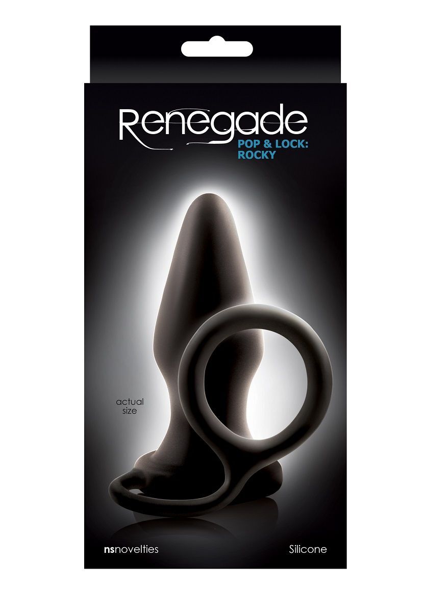 Эрекционное кольцо с анальной пробкой Pop & Lock Rocky. Анальная пробка будет обеспечивать усиление эрекции. Длина пробки - 12,7 см.