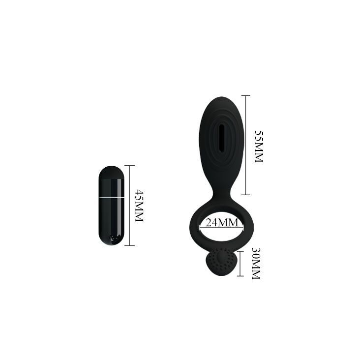Эрекционное кольцо с вибрацией – любимая игрушка множества пар, так как ощущения, которые она дарит, обеспечивают сильный оргазм и у мужчины, и у женщины. Данное колечко, выполненное вэлегантном черном цвете из силикона, представляет собой симбиоз классического кольца и большой клиторальной щеточки с вибрацией. Вибропуля съемная и может использоваться отдельно для стимуляции эрогенных зон. Внутренний диаметр - 2,4 см.