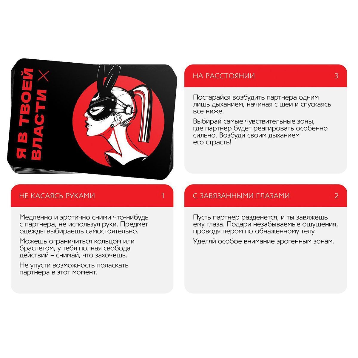 Вытягивайте карты из колоды в любом порядке и выполняйте написанное, не забывая об ограничениях в каждом задании. Поддавайтесь власти игры, и новые впечатления захлестнут вас. В комплекте: 25 карт.