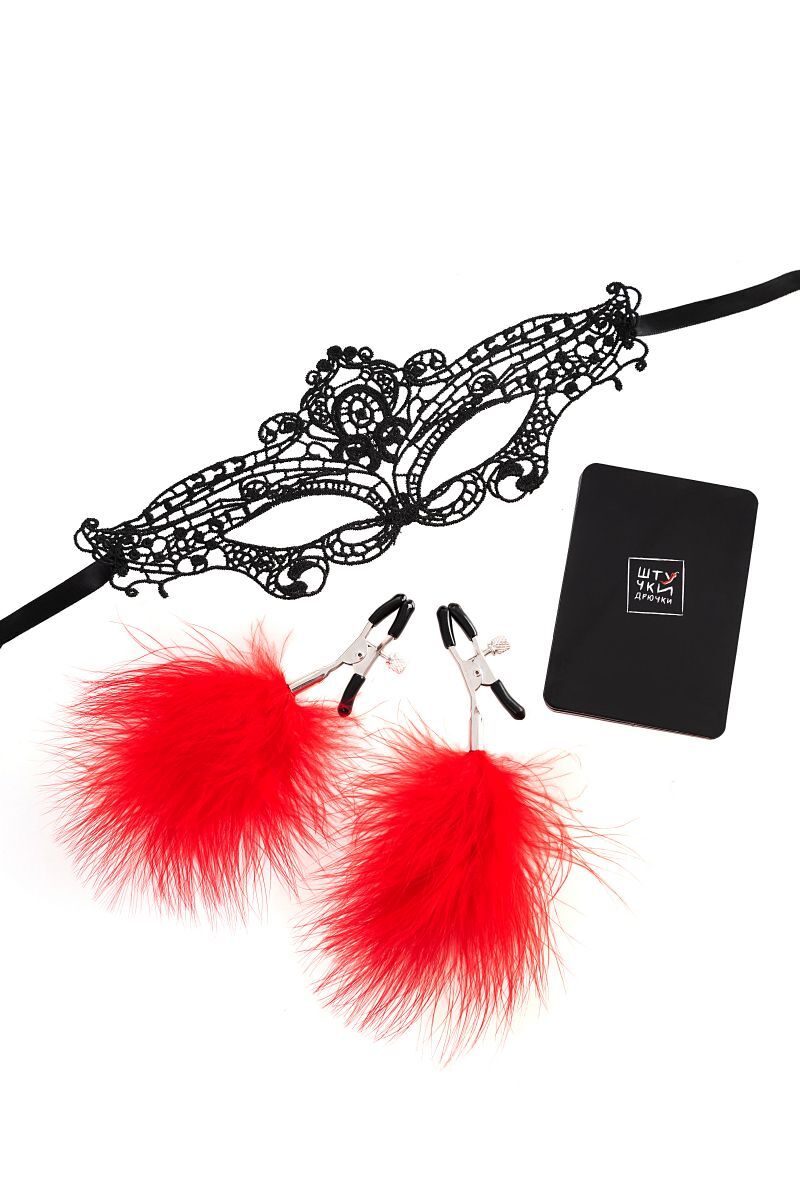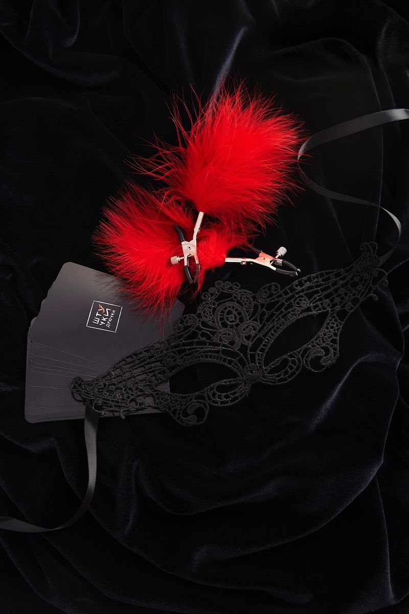Если ты из тех, кто любит погорячее - испытай захватывающие дух эмоции от чувственных игр. Пробуди в партнере интерес к смелым экспериментам. Примерь на себя непривычные роли с игрой от бренда Штучки-Дрючки. Элегантная маска поможет создать загадочный образ, зажимы на соски подчеркнут сексуальность изгибов тела, каждый сценарий позволит испытать новые впечатления. Доступно и непринужденно, шутя и игриво товары бренда Штучки-Дрючки знакомят с миром новых ярких эмоций и ощущений В комплекте: маска, зажимы на соски, карточки.