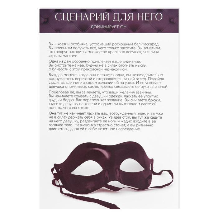 Эта игра позволит раскрыть партнёра с новой стороны и испытать невероятное наслаждение. Отбросьте стеснение и начинайте! Вас ждут пикантные вопросы и откровенные задания, ролевые игры и карточки с видами наслаждений, которые доведут вас до экстаза. А перо-щекоталка, лента для связывания и кружевная маска настроят вас на особенный лад. Внутри игры вы найдёте: 25 карточек Отвечай, 25 карточек Выполняй, 20 листов с наслаждениями, 2 листа с ролевыми играми, перо-щекоталку, ленту для связывания, маску, правила игры. В комплекте: 25 карточек Отвечай, 25 карточек Выполняй, 20 листов с наслаждениями, 2 листа с ролевыми играми, перо-щекоталка, лента для связывания, маска, правила игры.