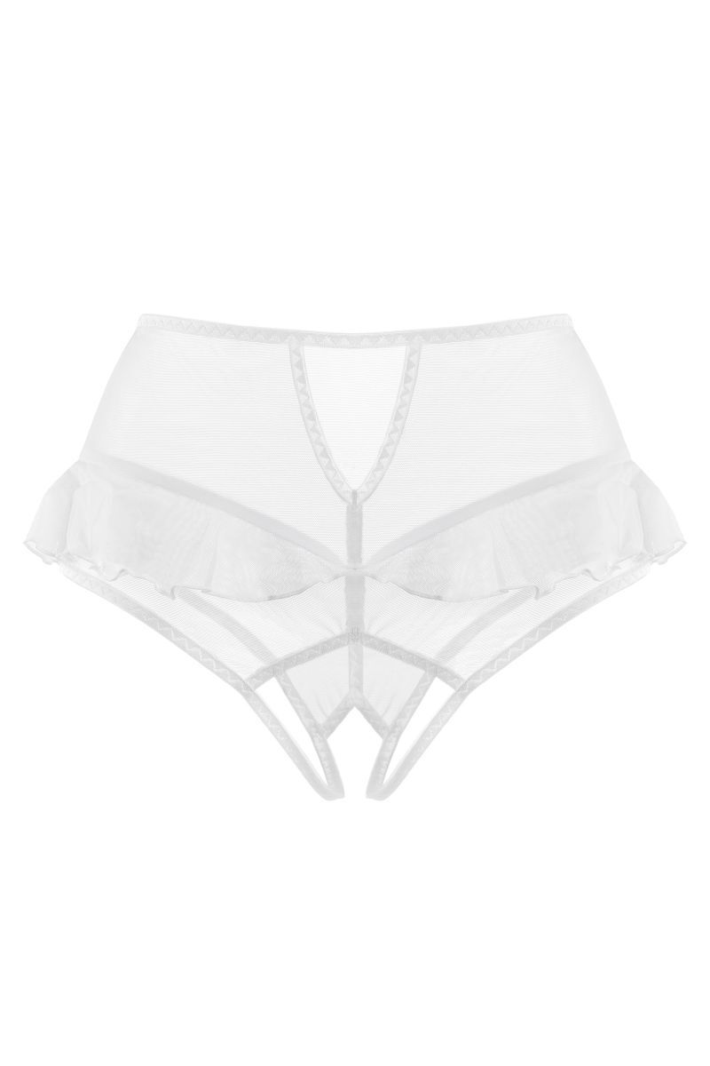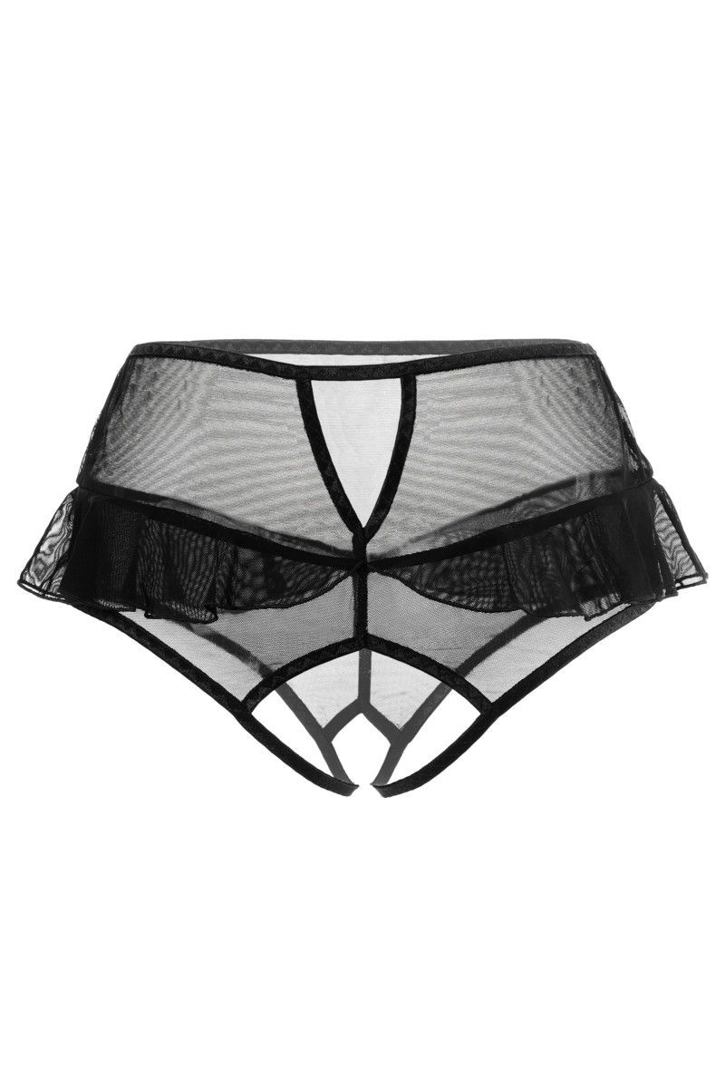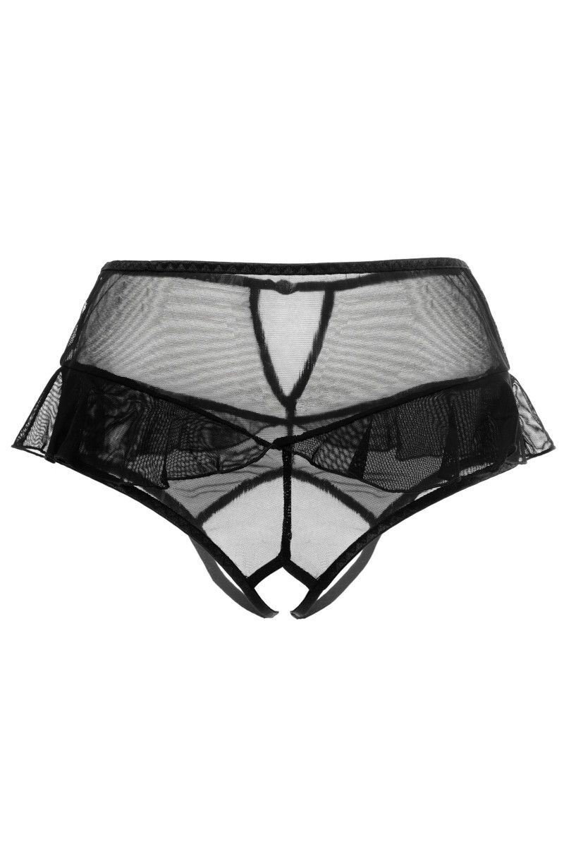 Эротические трусики с высокой посадкой Lana от Erolanta — ваши сторонники в искусстве соблазнения. Эластичная сетка изящно подчеркивает линию бедер, а игривые воланы обезоруживают своей невинностью. Высокая посадка эффектно выделяет талию и деликатно скрывает мелкие недостатки фигуры. Пикантный вырез сзади подстегивает мужскую фантазию, а доступ к интимной зоне позволяет наслаждаться игрой, не снимая трусики.