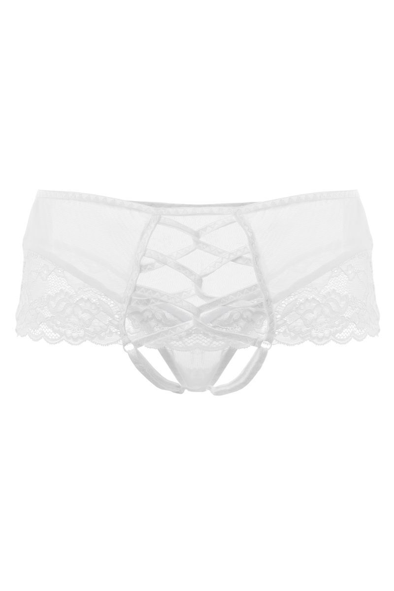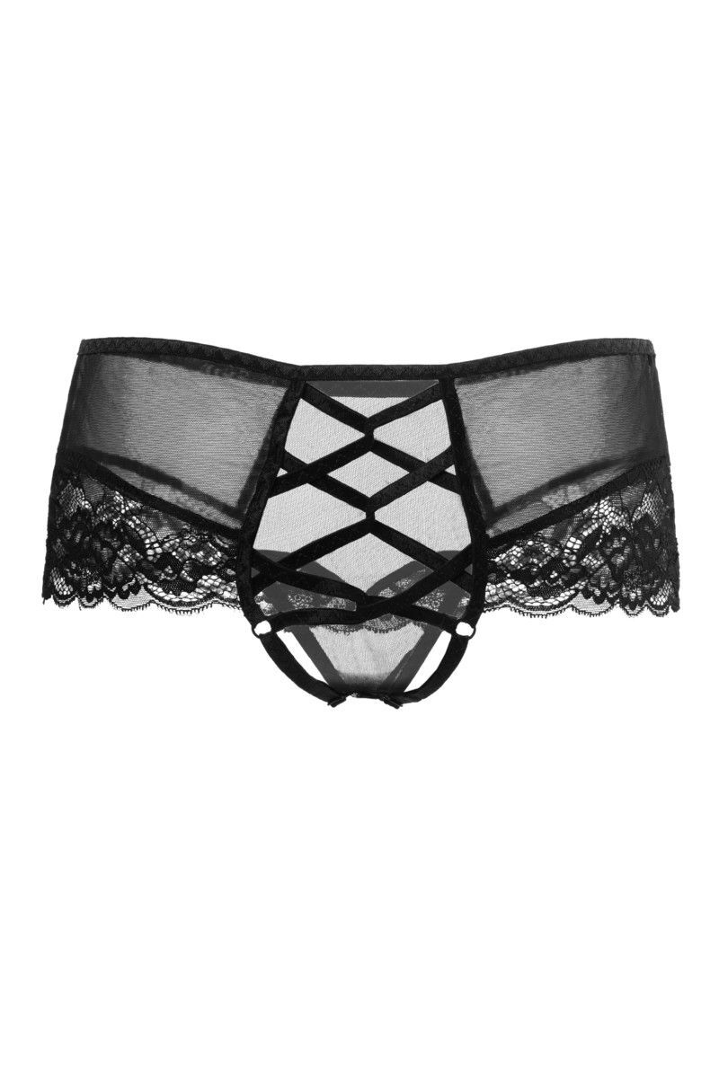 Яркое сочетание изысканного кружева и смелой шнуровки делает эротические трусики Cheryl от Erolanta незаменимым атрибутом интригующего образа. Эластичная сетка, дополненная вставками из нежного кружева, соблазнительно облегает бедра и расставляет на них аппетитные акценты. Эффектная шнуровка пробуждает смелые фантазии. Миниатюрные кольца и регуляторы на внутренних перемычках обеспечивают комфортную посадку. А дизайн доступа к интимной зоне позволяет наслаждаться игрой, не снимая при этом трусики.