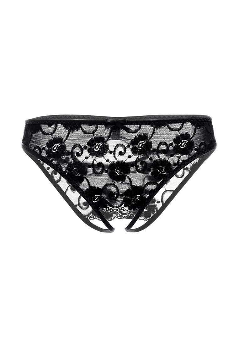 Эти очаровательные трусики с бантом станут для любимого настоящим сюрпризом. Выполненные из красивого кружева с крупным цветочным узором, они притянут взгляды к вашим бёдрам. Стоит вам чуть раздвинуть ножки или повернуться к милому спинкой, чтобы его целиком охватило сексуальное желание. Виной тому вырез, открывающий доступ и к нежному бутону, и к ложбинке попки. Сетчатый поясок, похожий на бант, и ажурная перемычка придадут виду сзади дополнительной пикантности.