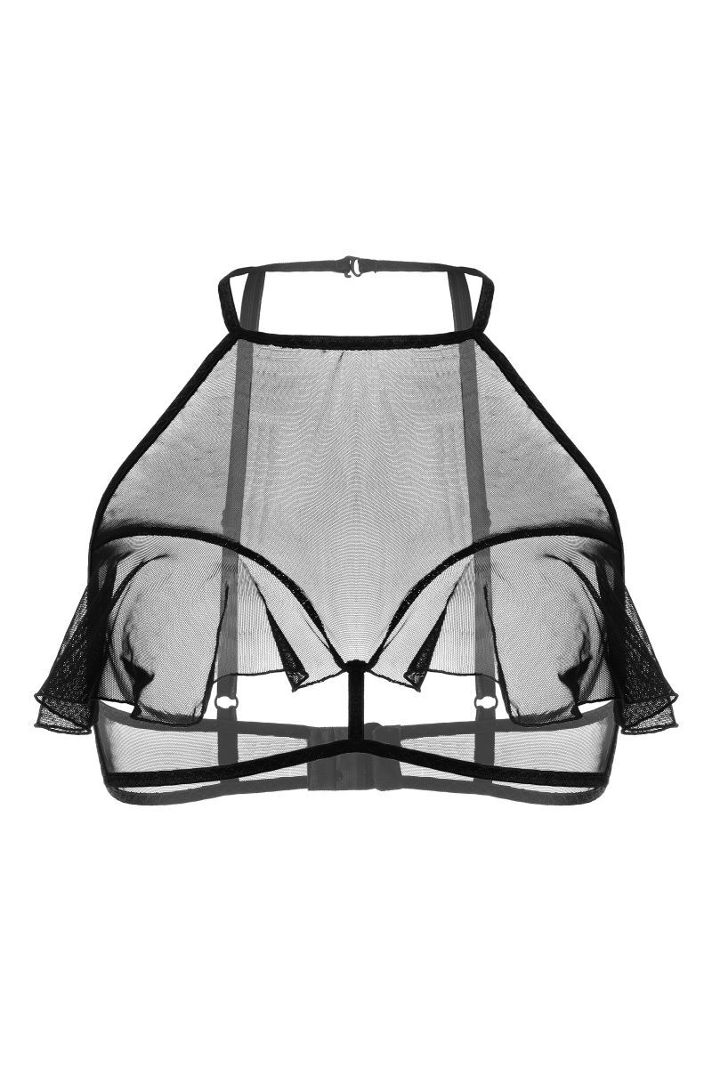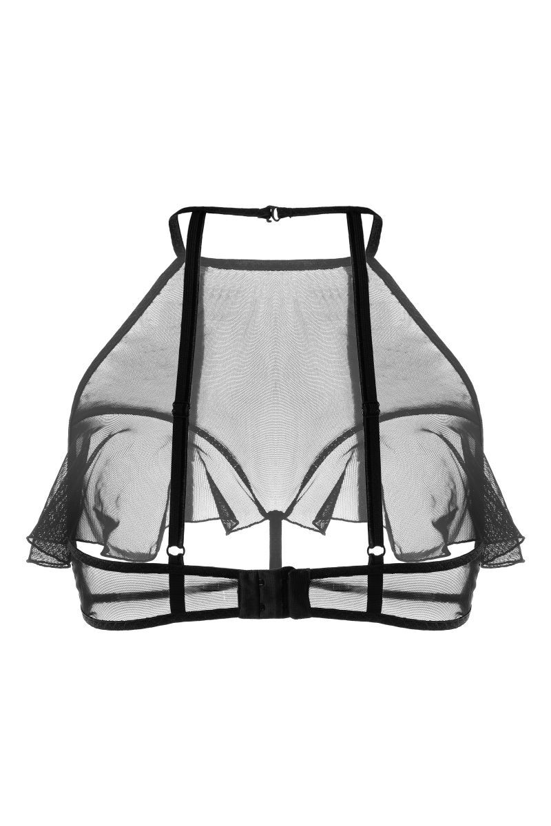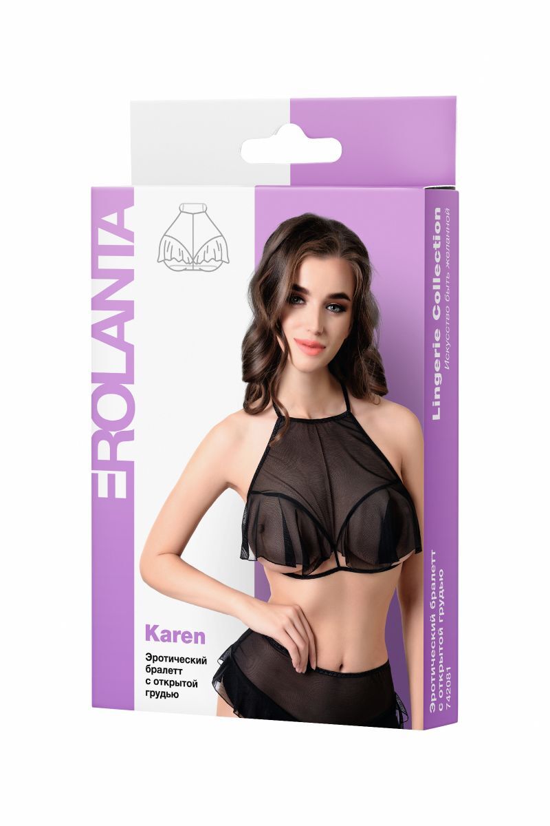 Откровенный бралетт Karen от Erolanta® не оставит вашего мужчину равнодушным. Мягкий топ из невесомой эластичной сетки приковывает взгляд к линии декольте. Очаровательные воланы игриво открывают доступ к груди. А тонкие регулируемые бретели, застежка на шее и многорядная застежка на спине обеспечивают комфортную посадку, которая позволит чувствовать себя невероятно уверенно. Заставьте сердце любимого биться чаще с бралетт Karen от Erolanta.
