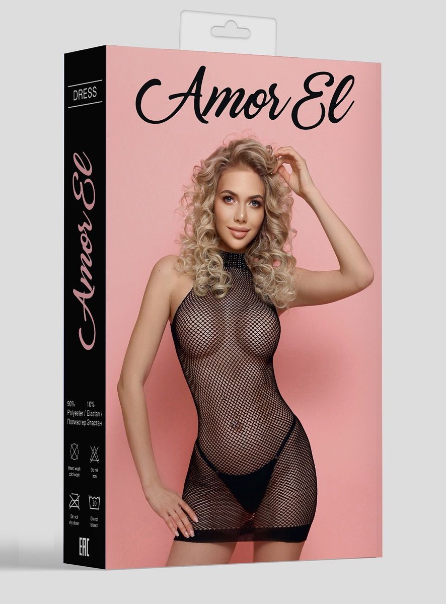 Эротическое мини-платье с высоким воротником. Оно имеет очень сексуальный рисунок в мелкую сетку. Благодаря использованию большего количества нейлона, белье сохраняет очертания, не деформируется, растягивается и выгодно облегает фигуру. Трусики не входят в комплект!