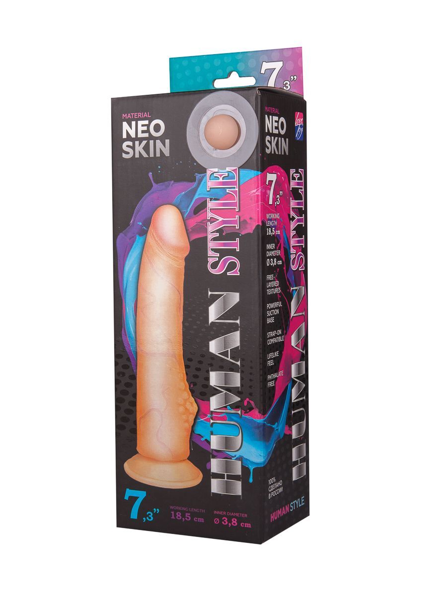 HUMAN STYLE - коллекция из 12 фаллических игрушек. Изготовлена с такими параметрами на изгиб, эластичность и жесткость, чтобы изделия максимально соответствовали физиологическим свойствам мужского фаллоса. Материал и технология разработаны в нашей стране. Двухслойная полимерная композиция изделия сделана из материалов и пластификаторов, разрешенных к применению в медицинской практике. Пигменты и внешняя окраска основаны на косметических ингредиентах. Рабочая длина - 19 см. Диаметр головки - 3,6 см.