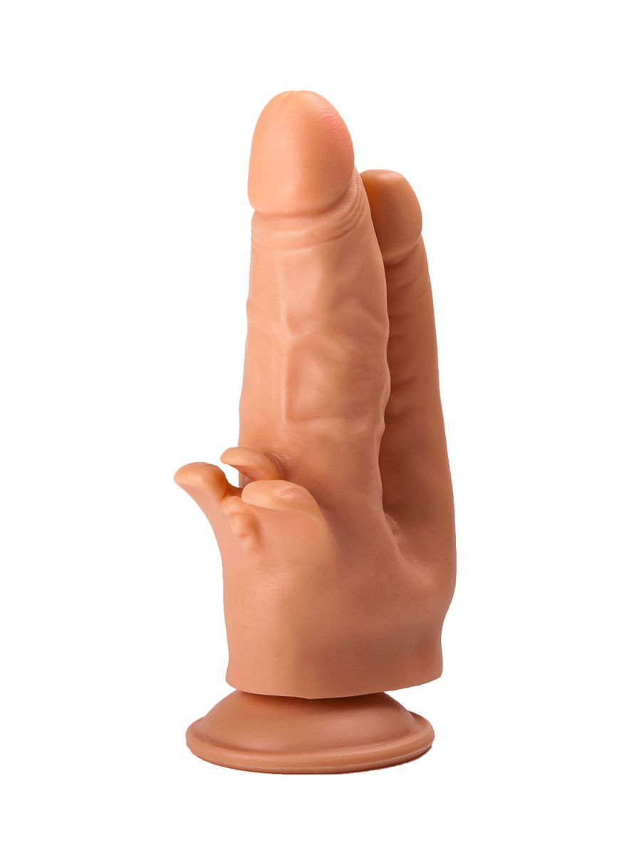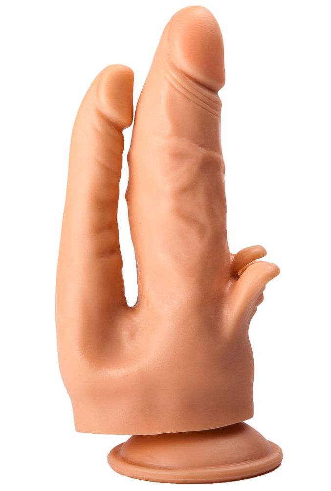 Получить наслаждение 2-в-1 проще, чем может показаться. Эта бежевая секс-игрушка из бархатистого на ощупь материала представляет собой два сросшихся в основании фаллоса. Тоненький ствол с чуть вытянутой головкой идеально подходит для анальной стимуляции. Крупный, с пышными венами и мягкими лепестками для клиторального массажа, подарит самые чувственные проникновения в лоно. Одновременная стимуляция внутри и снаружи – гарант действительно сильных ощущений и мощного оргазма. Подошва-присоска облегчит пользование реалистичным стимулятором. Рабочая длина вагинального отростка - 15 см., диаметр - 3,5 см. Диаметр анального отростка – 2,1 см.
