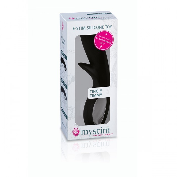 Если к вашему электростимулятору MyStim подключён этот чёрный фаллоимитатор из электропроводного силикона, впереди вас ждёт масса удовольствия. Введённый в лоно, он обеспечит чувственное скольжение и приятную электростимуляцию стеночек. Вам понравится сладкое покалывание и бешеная пульсация, заставляющая интимные мышцы возбуждённо сжиматься. Отросток у ручки-кольца будет касаться клитора при каждом введении игрушки в лоно. Поверьте, этой эрогенной зоне также придётся по нраву электросекс! Рабочая длина - 9,5 см.