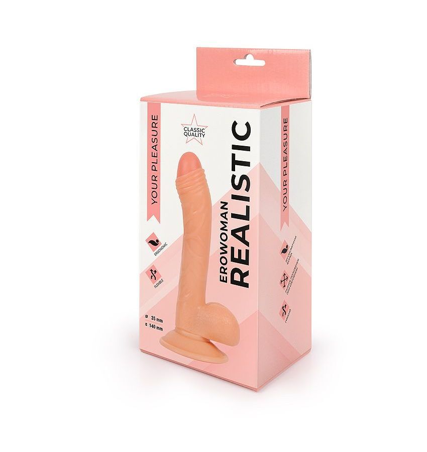 Великолепный фаллоимитатор-реалистик Erowoman займёт достойное место в любой коллекции секс-игрушек! Основные плюсы изделия - это прекрасное качество исполнения точная имитация всех деталей - чётко выраженная головка и мошонка, хорошо прорисованные венки и складочки естественный оттенок поверхности прочная присоска, позволяющая закрепить интимный аксессуар на ровной поверхности в горизонтальном или вертикальном положении. Фаллоимитатор изготовлен из мягкого материала, дарящего приятные тактильные ощущения. Прост в использовании и уходе. Рабочая длина - 14 см.