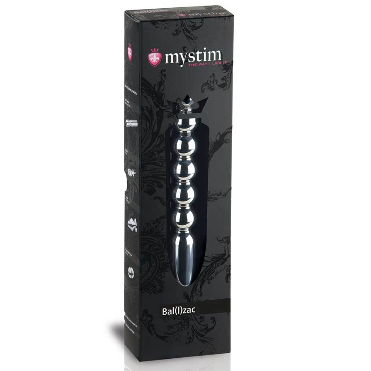 Bal(l)zac – металлический фаллоимитатор, представляющий собой алюминиевый стержень из шести шариков. Будучи подключённым к электростимулятору MyStim и введённым в вагину/анус, он порадует вас пикантными ощущениями. Самые сильные импульсы будут наблюдаться в местах максимального диаметра шарика. Таким образом, движение игрушки внутри вас позволит насладиться и рельефом, и сменой силы тока!