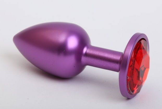 Фиолетовая анальная пробка с красным стразом - 7,6 см.