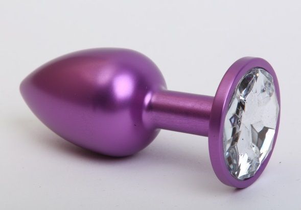 Фиолетовая анальная пробка с прозрачным стразом - 7,6 см.