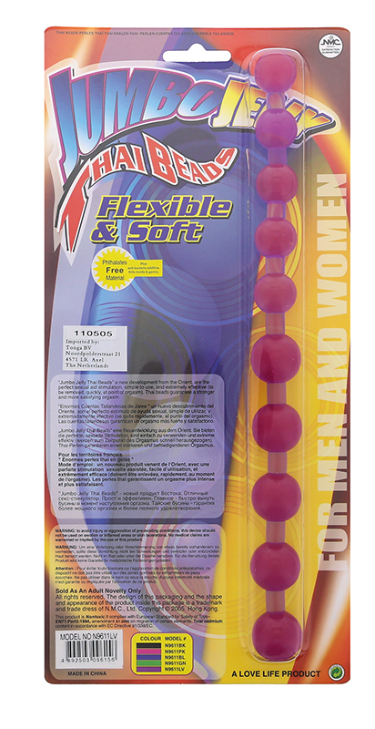 Фиолетовая анальная цепочка JUMBO JELLY THAI BEADS CARDED LAVENDER - 31,8 см.