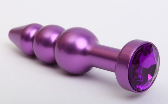 Фиолетовая фигурная анальная ёлочка с фиолетовым кристаллом - 11,2 см.