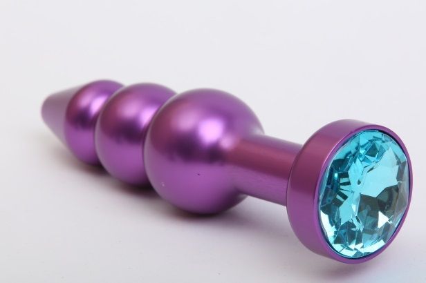 Фиолетовая фигурная анальная ёлочка с голубым кристаллом - 11,2 см.
