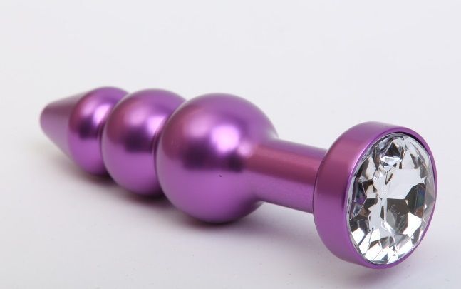 Фиолетовая фигурная анальная ёлочка с прозрачным кристаллом - 11,2 см.