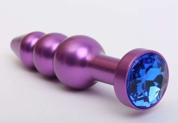 Фиолетовая фигурная анальная ёлочка с синим кристаллом - 11,2 см.