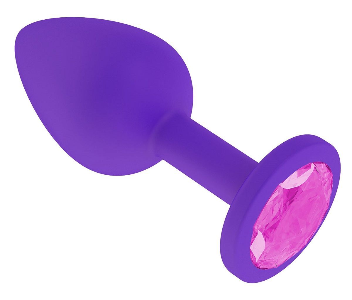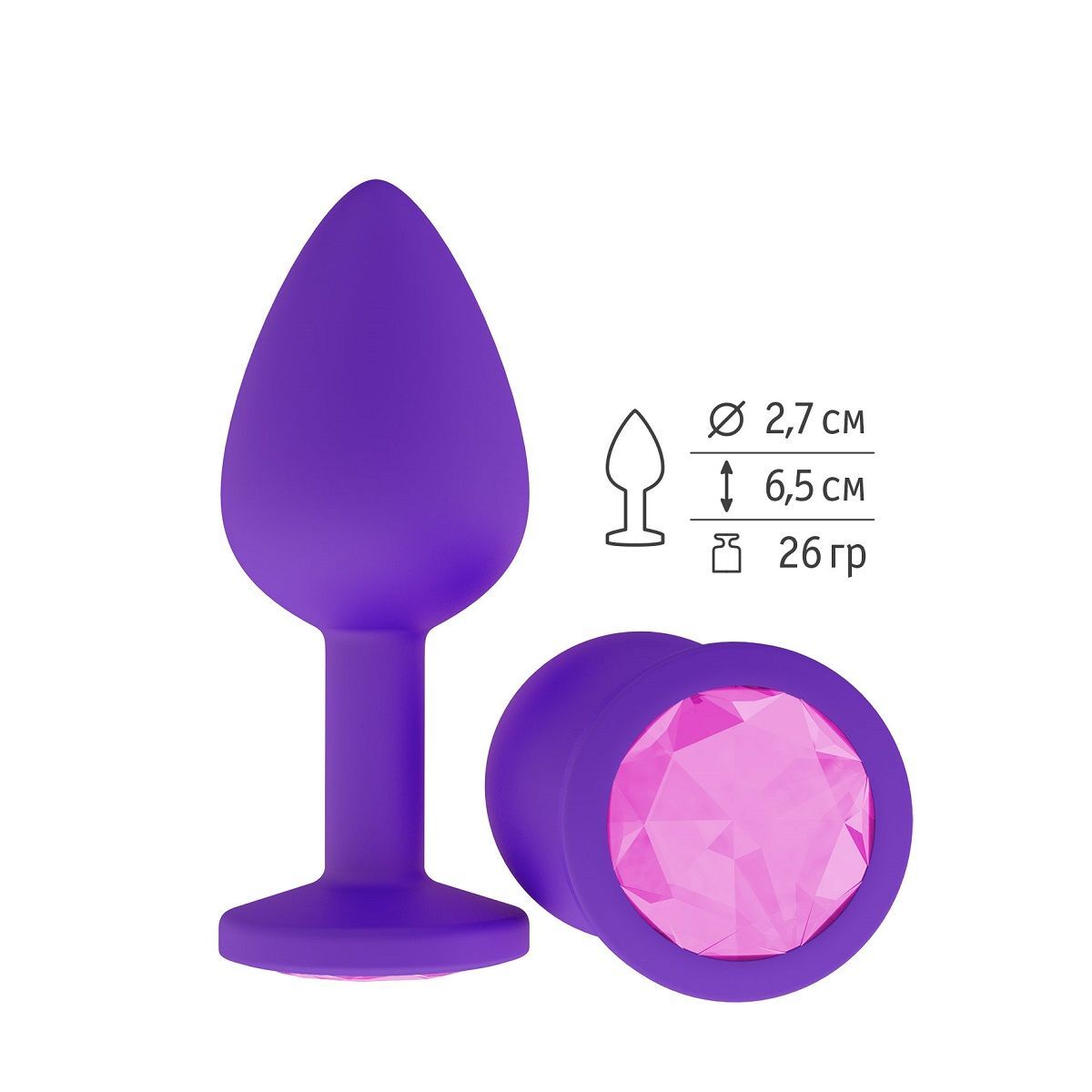 Фиолетовая силиконовая пробка с розовым кристаллом - 7,3 см.