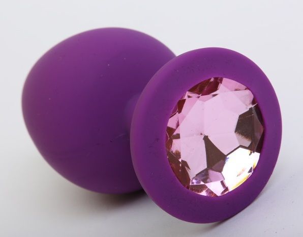 Фиолетовая силиконовая пробка с розовым стразом - 9,5 см.