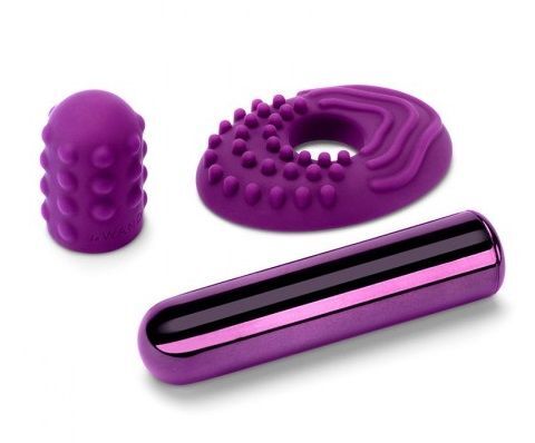 Фиолетовая вибропулька Le Wand Bullet с 2 нежными насадками