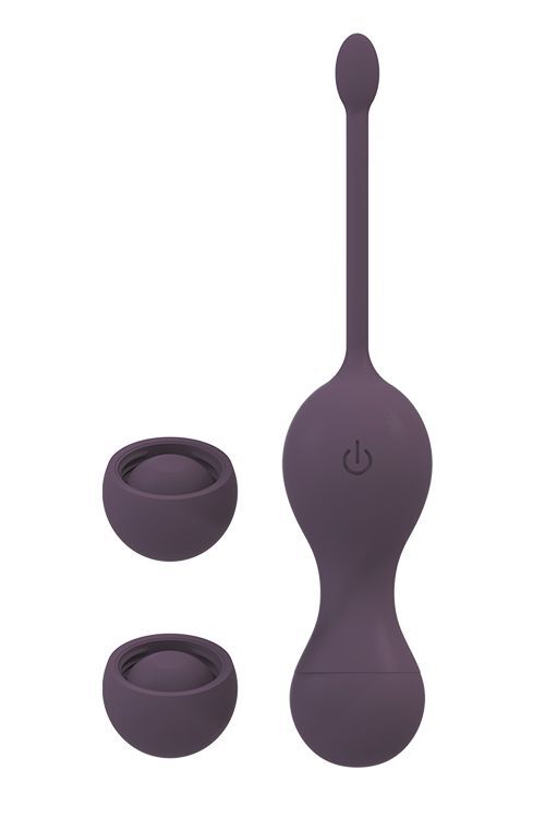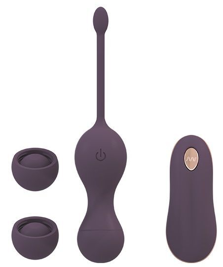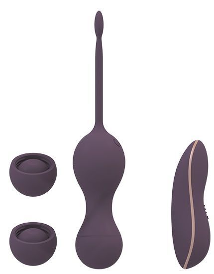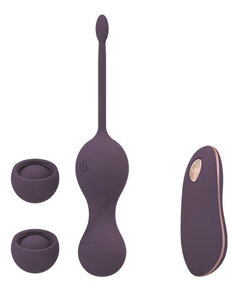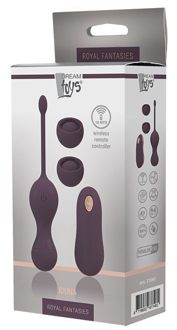 Фиолетовые виброшарики IDUNA с пультом ДУ. В комплекте 3 сменных шарика разного веса (9, 32 и 41 гр.). Водонепроницаемые.