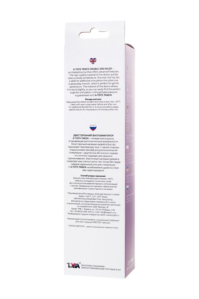 Двусторонний фаллоимитатор A-Toys Tanza – интересная игрушка, открывающая дополнительные возможности. Качественный материал девайса быстро принимает температуру тела. С одной стороны игрушка имеет рельеф для дополнительной стимуляции, с другой она абсолютно гладкая, что отлично подойдет для нежного проникновения. Эластичный материал девайса позволяет ему слегка гнутся, так что вы без труда найдете идеальный угол для стимуляции. С A-Toys Tanza незабываемое удовольствие вам гарантировано! Минимальный диаметр - 2,7 см.