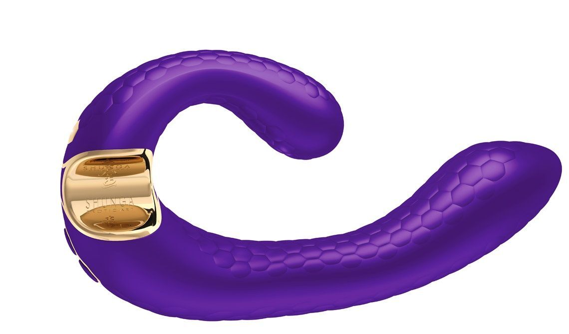 Фиолетовый гибкий вибростимулятор MIYO с двумя моторами - 18,5 см.
