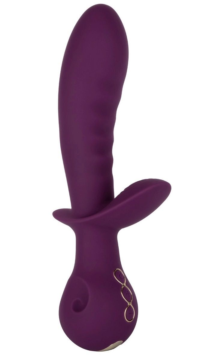 Lover – двойной стимулирующий массажер с отростком для вагинального и анального секса. Вибратор выполнен из 100% качественного силикона, основной ствол и клиторальный отросток имеют 10 режимов вибрации. Благодаря строению вибратора, его можно использовать для анального секса, отросток и кольцевидное строение на окончании ствола станут отличным ограничителем для анальных игр. Управление осуществляется с помощью 3 кнопок в основании. Чтобы включить или выключить стимулятор, необходимо нажать и в течение трех секунд удерживать верхнюю кнопку питания. Вибромассажер заряжается через USB и может быть подключен практически в любом месте, просто подсоедините идущий в комплекте шнур к совместимому порту компьютера или USB-адаптера (приобретается отдельно), а противоположный конец к разъему у основания. Полная зарядка занимает 150 минут, ее достаточно для беспрерывной работы в течение 90 минут. Рабочая длина - 12,75 см. Длина клиторального отростка - 4,5 см., диаметр - 3,75 см.