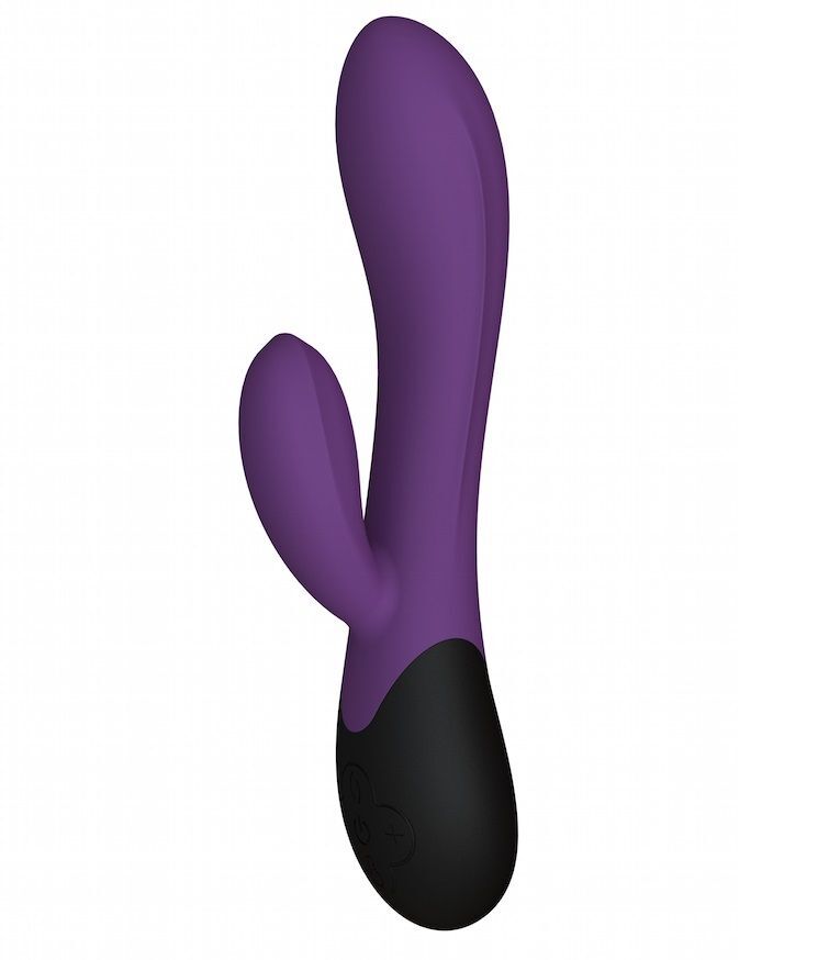 Фиолетовый вибратор с клиторальным отростком и нагревом Perseus - 20,8 см.