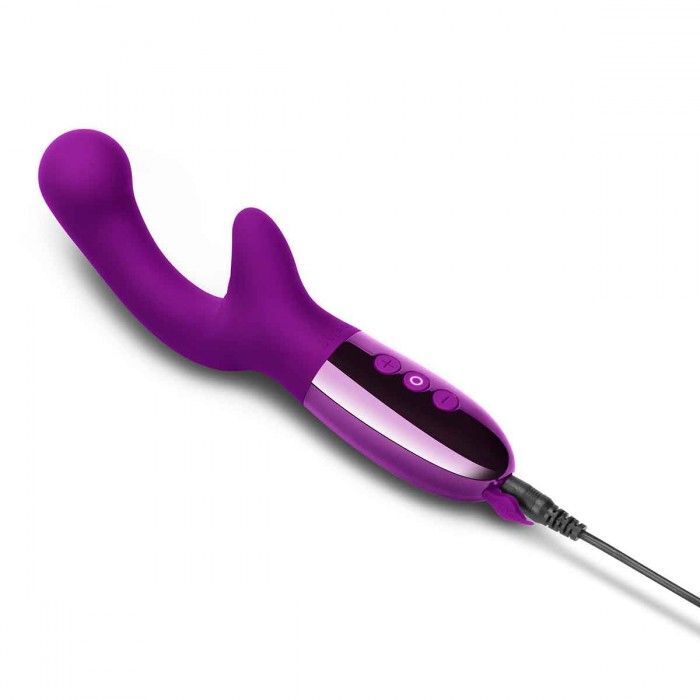 Фиолетовый вибромассажер с двумя моторами Le Wand XO - 19 см.