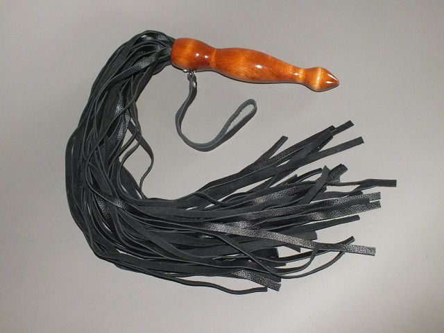 Флогер с ручкой в виде анального стимулятора и мягкими кожаными хвостами. 40 хвостов. Ручная работа. Ручка выполнена из натурального дерева,идеально отшлифована и покрыта несколькими слоями прозрачного лака. Длина полос - 40 см.