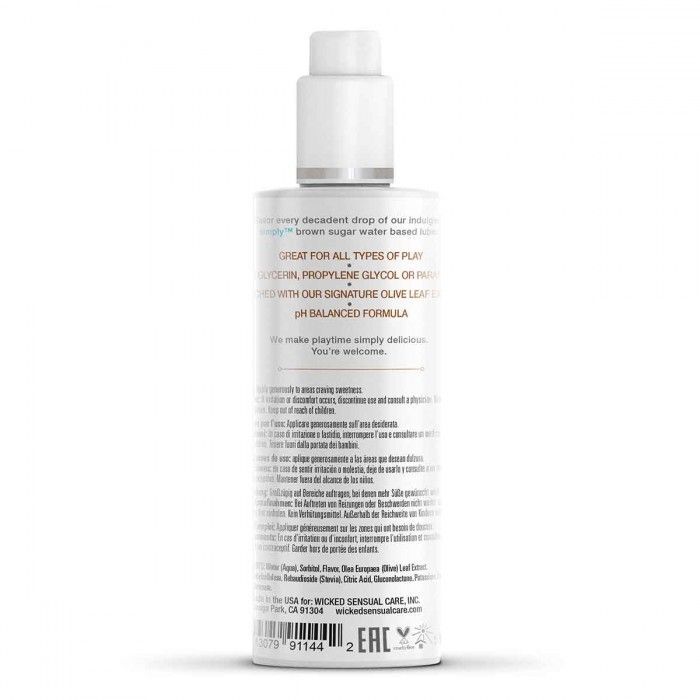 Наслаждайтесь каждой каплей новой восхитительной смазки на водной основе со вкусом коричневого сахара. Сделайте время любовной игры просто восхитительным! Отлично подходит для орального секса и вагинального секса, pH-сбалансирована. При производстве Wicked не используется сахар, сладость придает выжимка из растения стевия, благодаря чему лубрикант не оставляет послевкусия, не липнет и дарит удивительное ощущение скольжения. В составе лубриканта есть экстракт оливкового листа, который является природным обеззараживающим средством, мягкая формула подходит даже для чувствительной кожи. Удобная упаковка с помпой поможет насладиться моментом близости в полной мере. Сочетаема с латексом, и любыми интимными игрушками. Без парабенов, глицерина и пропиленгликоля в составе.