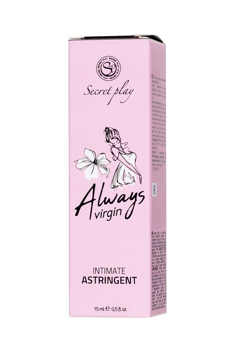 Secret Play приготовил волшебное зелье, способное подарить партнерам максимально тесный контакт и эффект первого раза. Сужающий гель для женщин Always Virgin Intimate Astringent способен подарить ощущение гладкого и тугого входа. Натуральные ингредиенты геля создают эффект девственницы благодаря вяжущим и сужающим влагалище свойствам. За 15 минут до полового акта нанесите гель на стенки влагалища и вотрите легкими массирующими движениями до полного впитывания. Гель для тесного контакта Always Virgin полюбился многим парам – он освежает интимные отношения и усиливает удовольствие для обоих партнеров.