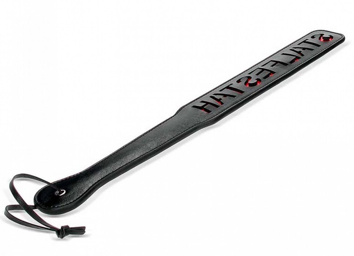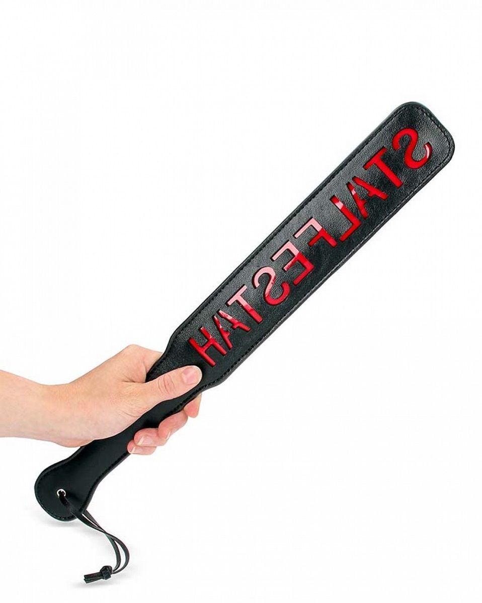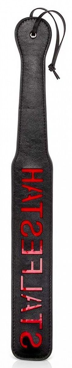 Шлепалка с надписью HATSEFLATS - ударный девайс для эротических ролевых игр и практик БДСМ. Ударная часть имеет прямоугольную форму, плавно перетекающую в рукоять. Паддл чаще всего используется для шлепания по ягодицам – спанкинга для придания остроты сексуальным отношениям и получения новых ощущений.