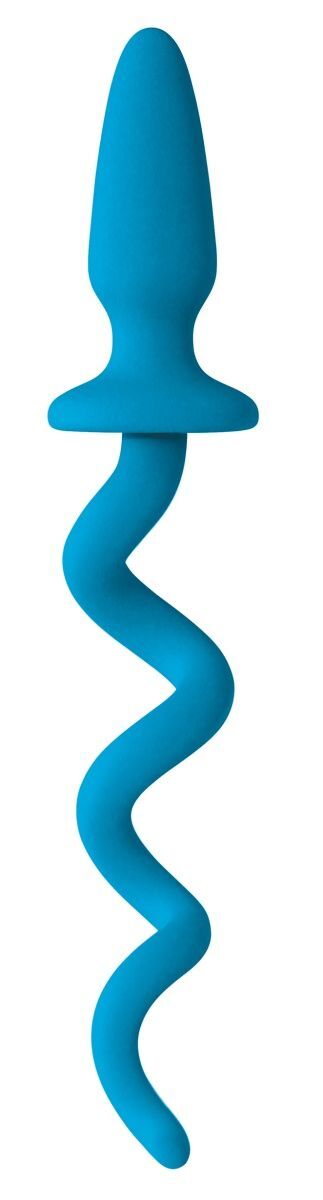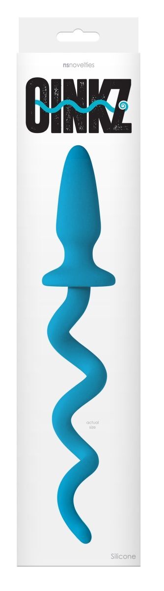 Голубая анальная пробка с хвостом-спиралью Oinkz