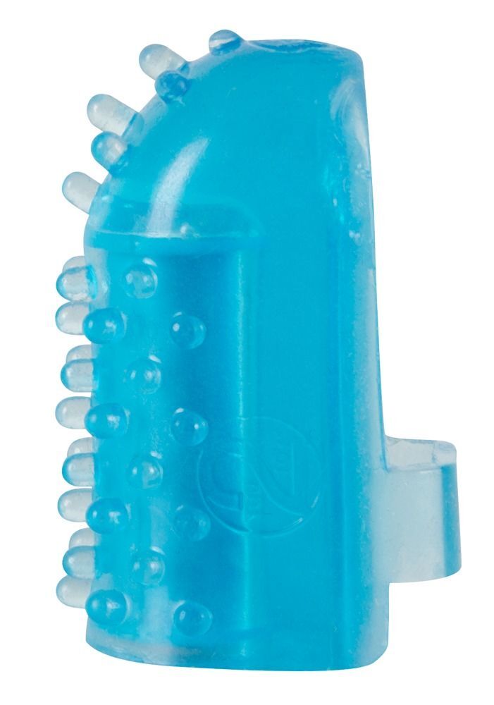 Голубая насадка на палец с вибрацией. На пальце игрушка фиксируется при помощи петельки. Насадка покрыта мягкими шишечками, усиливающими воздействие на эрогенную зону (клитор, соски,п оловые губы и пр.). Батарейки не предполагают замены!