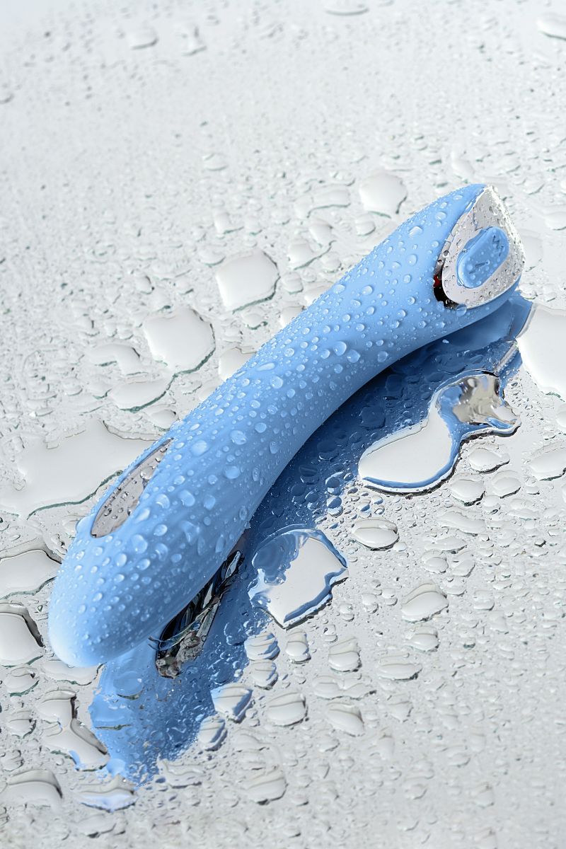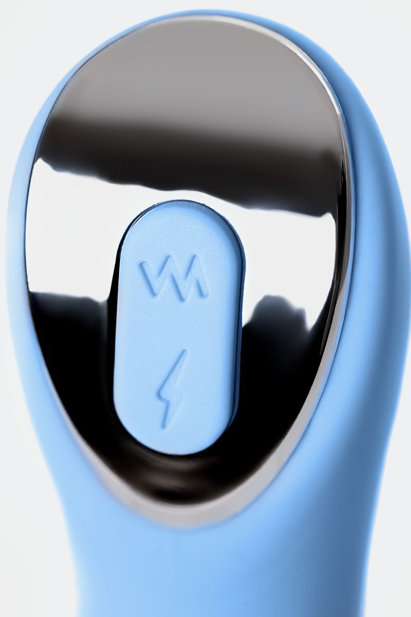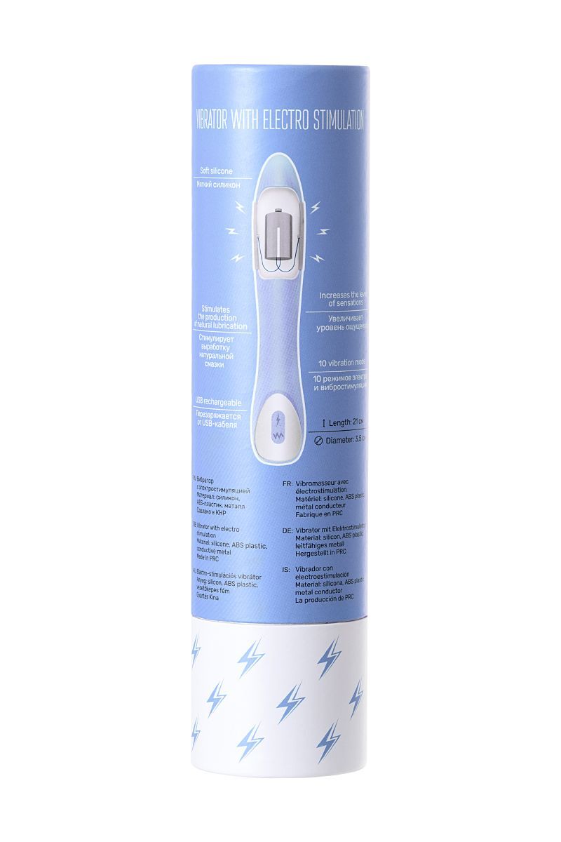 Голубой силиконовый вибратор с электростимуляцией TESLA G-POINT - 21 см.