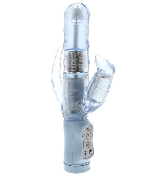 Голубой вибромассажёр для тройной стимуляции SEVEN SEAS VIBE BLUE. Водонепроницаемый корпус. 7 режимов вибрации. Рабочая длина - 15 см.