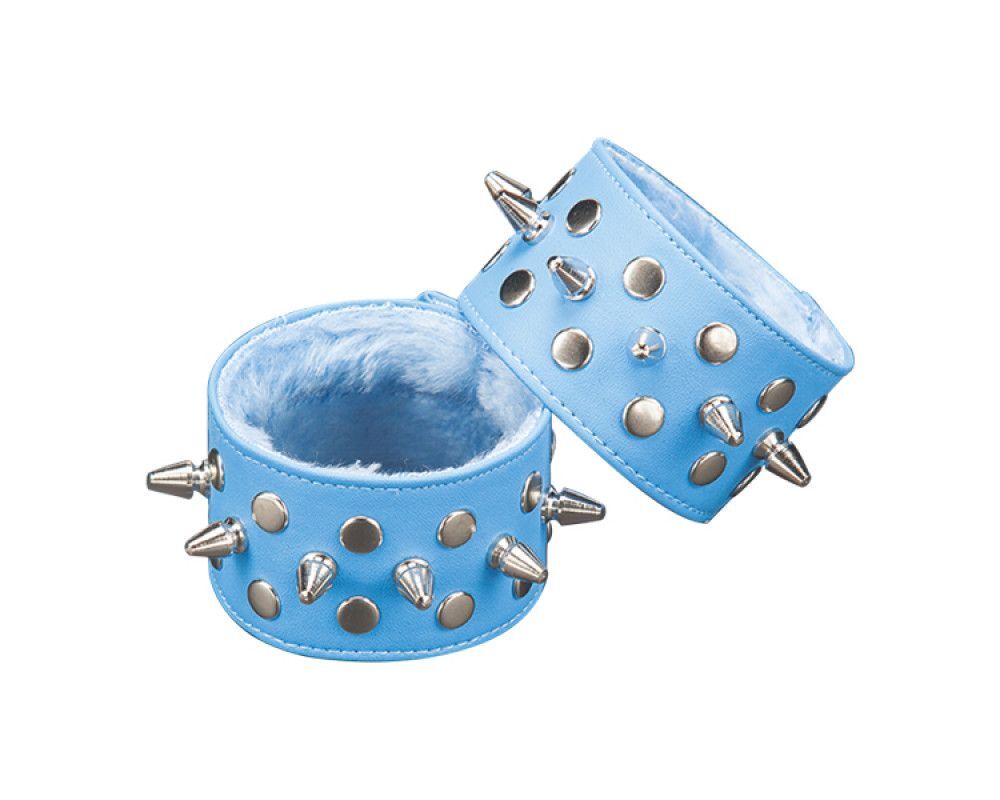 Напульсники с шипами изготовлены из искусственной кожи и меха. Ширина напульсников - 4,5 см. Длина шипов - 1,2 см.